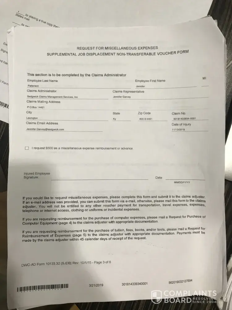 I've requested on several occasions, a call back from a manager at Sedgwick and I've yet to hear anything. My next step is to obtain the assistance of lawyer.
