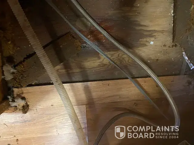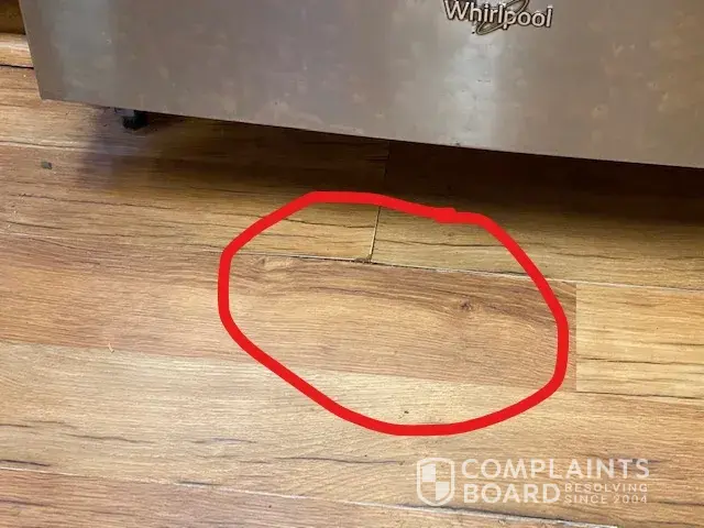 3/31/21 - Sears Home Services made a dishwasher repair that resulted in flooding and damage to kitchen floor. 4/12/21 - We noticed the flooring appeared to be "squishy" and coming apart. 4/16/21 - A different Sears repairman confirmed the parts were not seated/installed correctly.