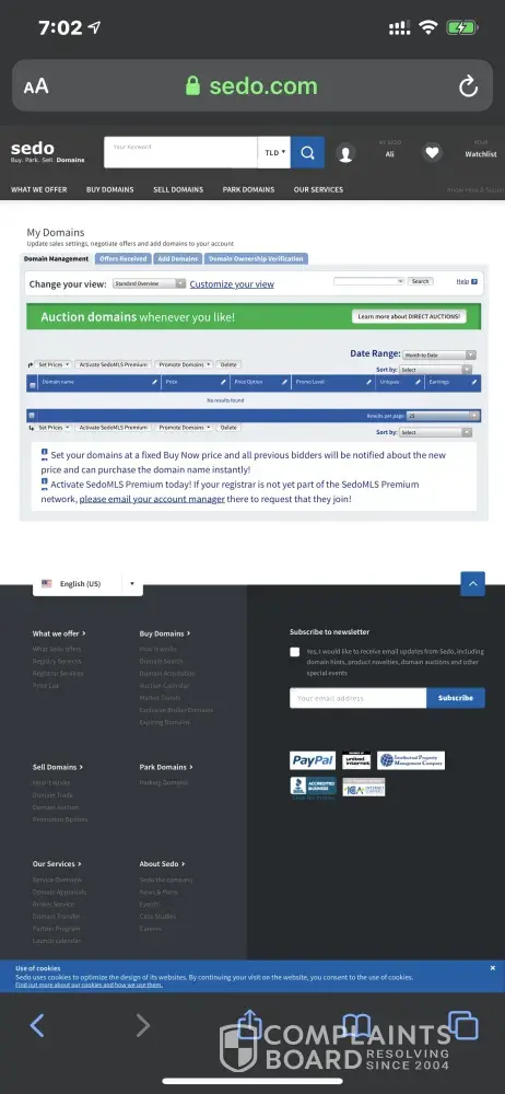 Sedo.com’s earns a 2.6-star rating from 0 reviews and 5 complaints, showing that the majority of domain buyers and sellers are somewhat satisfied with transactions.