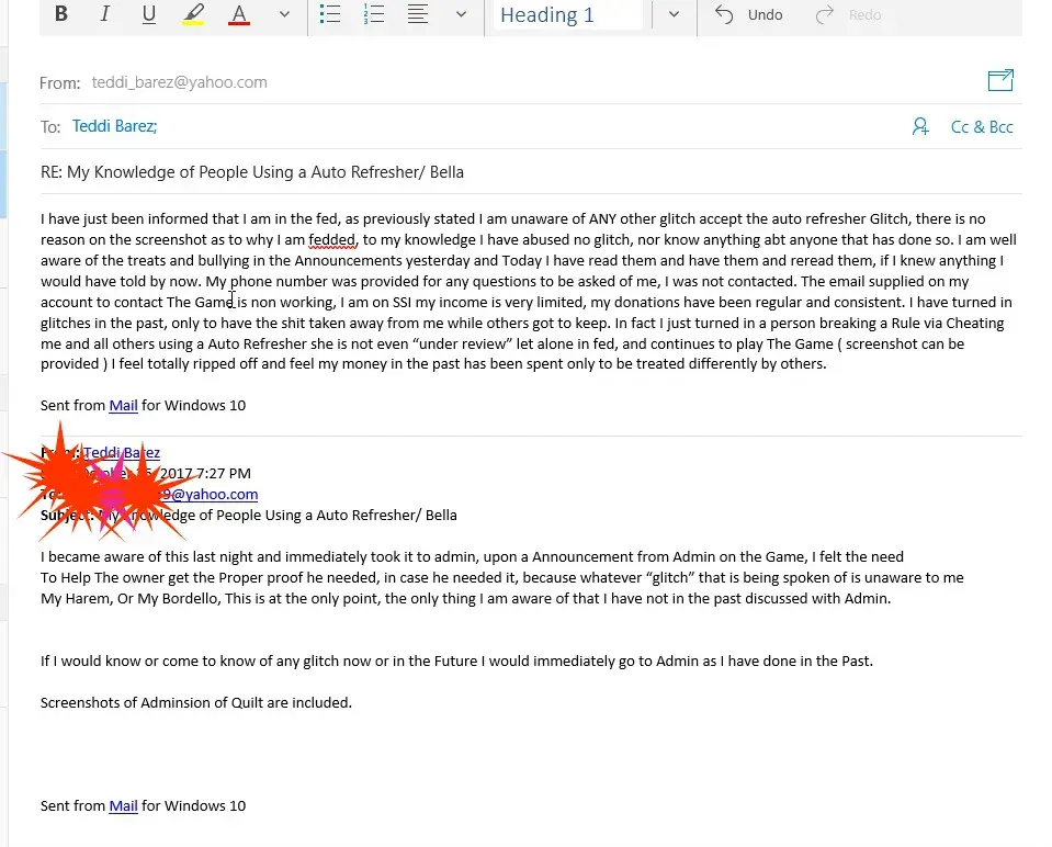 Trust me they have proof otherwise a certain site in which you use to pay would not have sided with them... and time stamps mean nothing if you can't prove that the person is who they say they are or even plays the game..You deleted the URLs on the page that is the real proof... I can create a false conversation after back dating my computer to make it look like a conversation took place at a certain time and date.gather some information about a site from people and falsely accuse anyone one of anything.. that show how little you know about cyber Intel. It is not cyber bullying if you broke a rule you agree to follow.. which you did..and were kicked off all the games. Having played many games most other owner would just kick you off for being stupid or a cry baby.. and it is their right... They owe you nothing.. You didn't talk to staff like you should because you didn't think you would caught. So all your accounts were fedded because your a shoplifters, a thief and again instead of admitting what you did you are trying to turn the focus on to someone else like a child does. This discussion is not about them it is about YOU and YOUR crimes.. We all now know that DonShaw is POSSIBLE proving you these screen shot because his profile page is in the back ground..