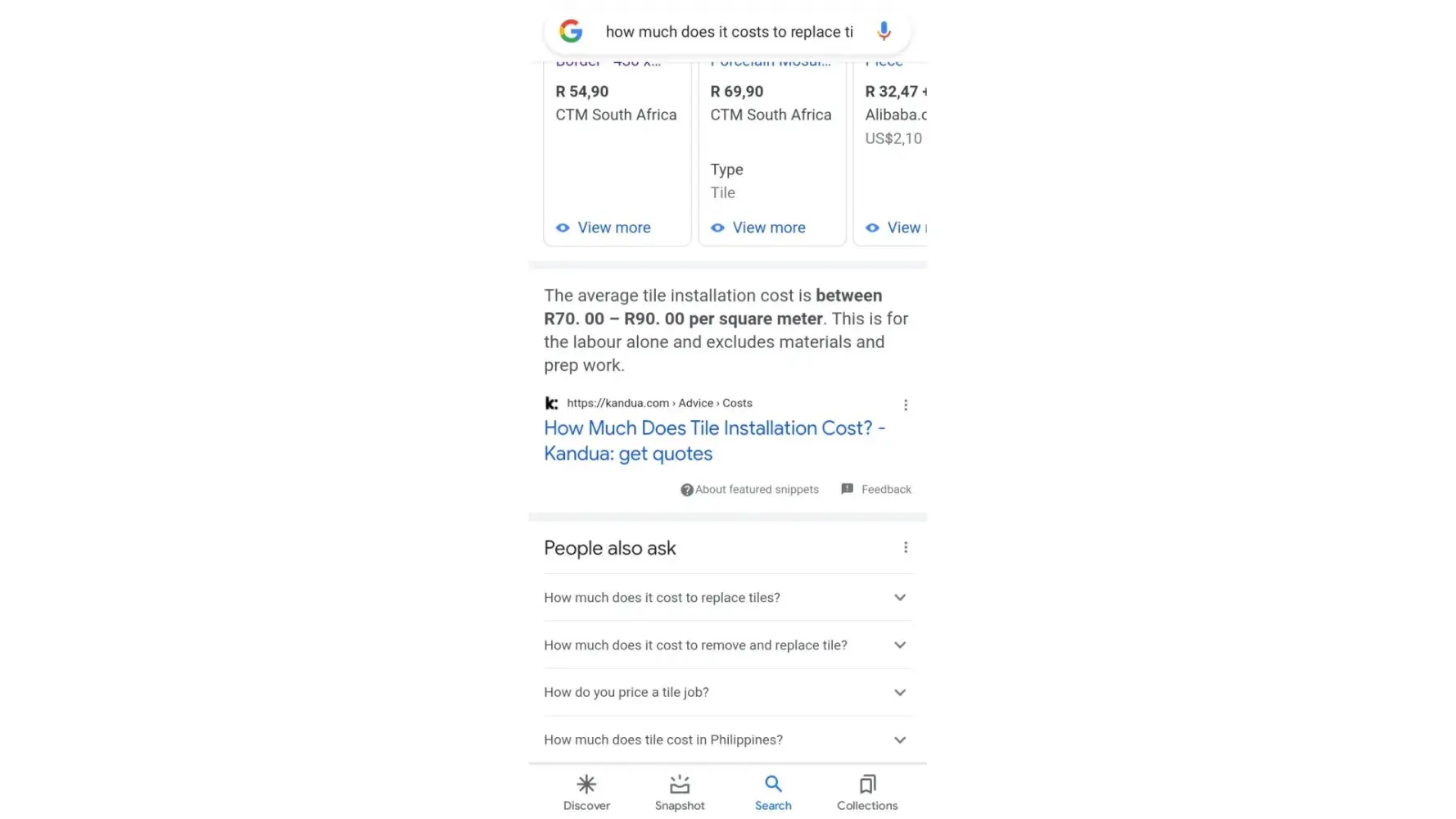 Later on after 3 weeks of waiting for the refund of the deposit I was told the estimate amount of R1500 would be charged for the tile, which I then requested a 3 quotation which the agents agreed on later to find out that I could not be provided with such material of 3 quotes and I was an excel spreadsheet invoice of r1500 for a single tile with no information containing labour's costs or even a company's logo or information which I was appalled from finding