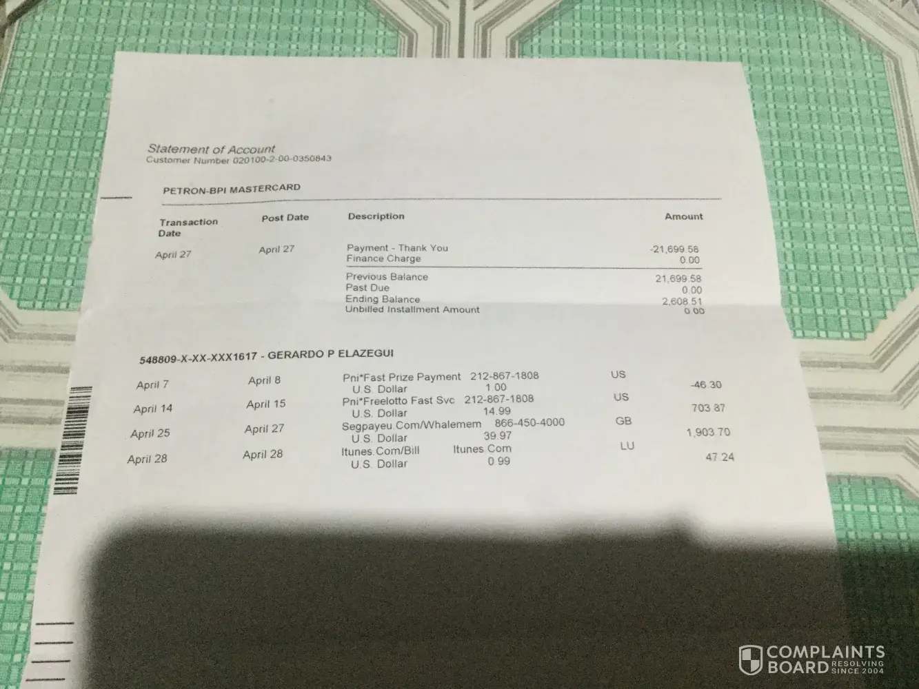 and the charge appears as on my statement 2010-02-02 SEGPAYEU.COM8009906276 NICOSIA