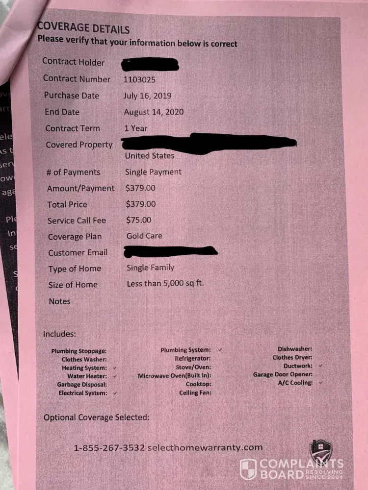 I have same problem... do not go to select home warranty.. these people are stealers...