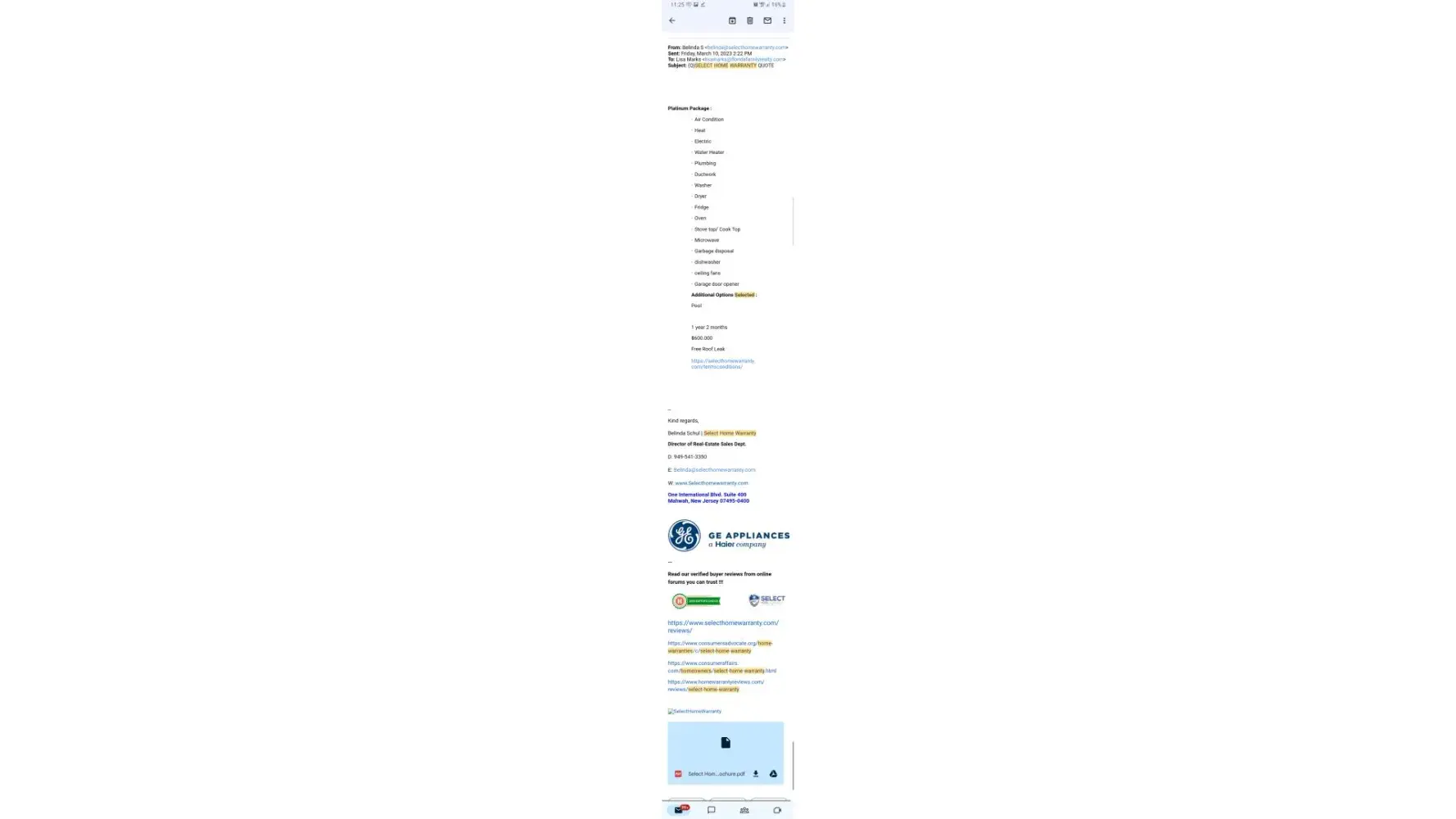 I signed up with Select Home Warranty on 8/3/21 and paid Select $1417 for a 3 year contract. I needed a repair service for my rental unit which is not conveniently nearby.