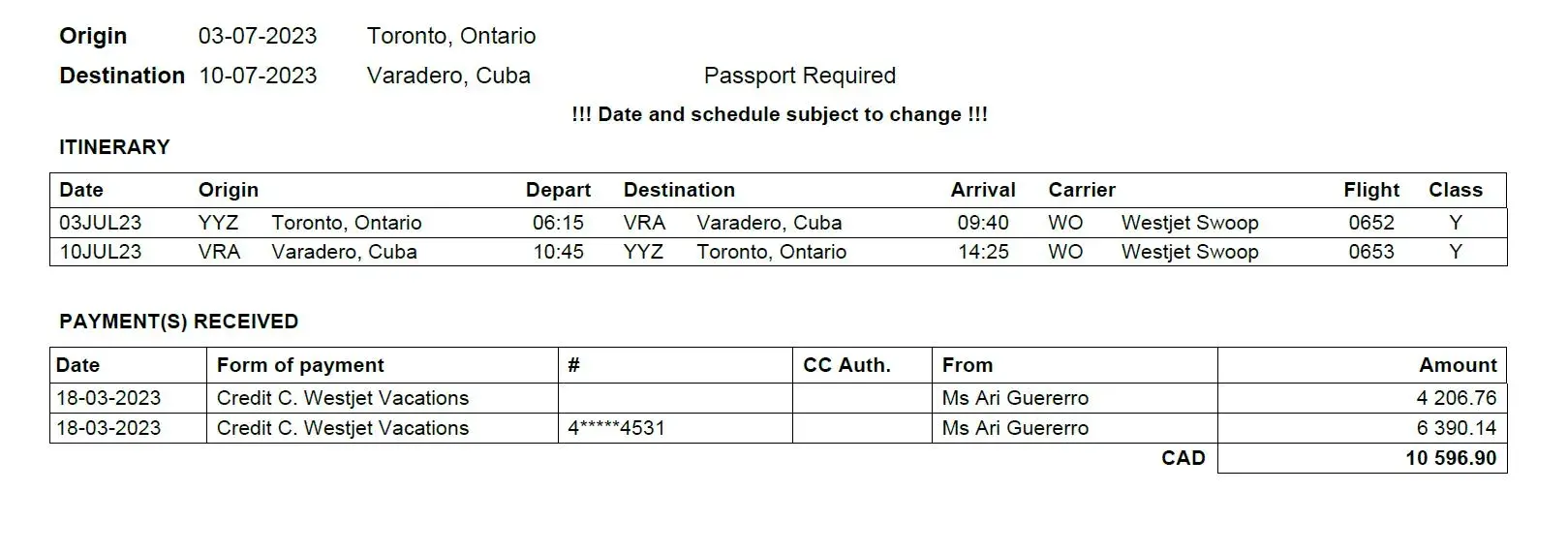 To Whom It May Concern, We would like to formally express our disappointment with the service we received from our travel agent Lori in london Ontario, who handled our vacation booking from June 1–7. This was our first trip in 25 years, and we trusted her based on her promises. Unfortunately, our experience was stressful and frustrating. Below are the...