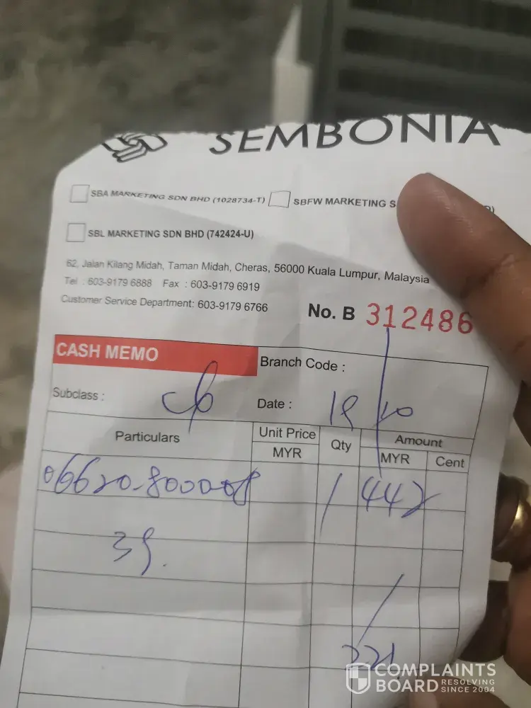 I bought this Sembonia handbag at Sembonia Batu Pahat Mall, Batu Pahat Johor Malaysia last year before my wedding day on Dec/21 but I lost the receipt. But the handbag is damaged by its own material. I keep the handbag in the dust bag provided but it seems that the problem keep occurs as Sembonia material handbag is the main problem. I made a complaint through @sembonia_official on Instagram from 5th March 2022 till 8th March 2022 but I haven't received any call from Sembonia and no action were taken since then from Sembonia.