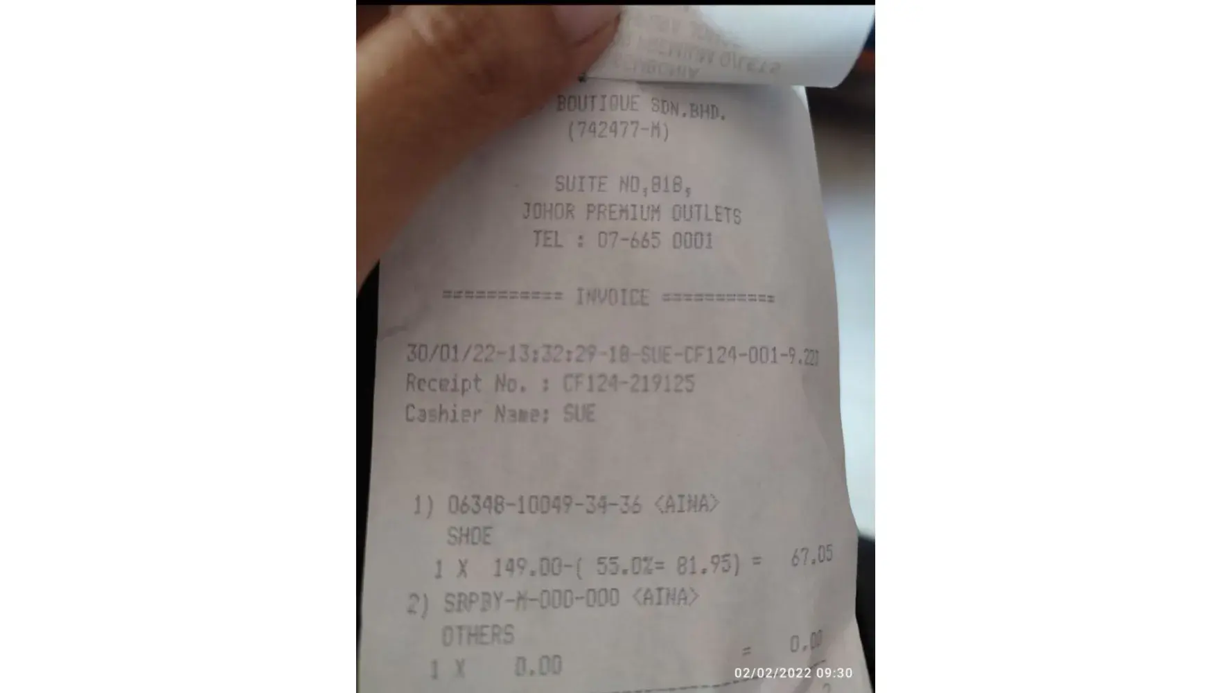 Buy shoe on 30 January 2021 from Johor Premium Outlet, Johor Bahru, wear it on same day, start peeling.