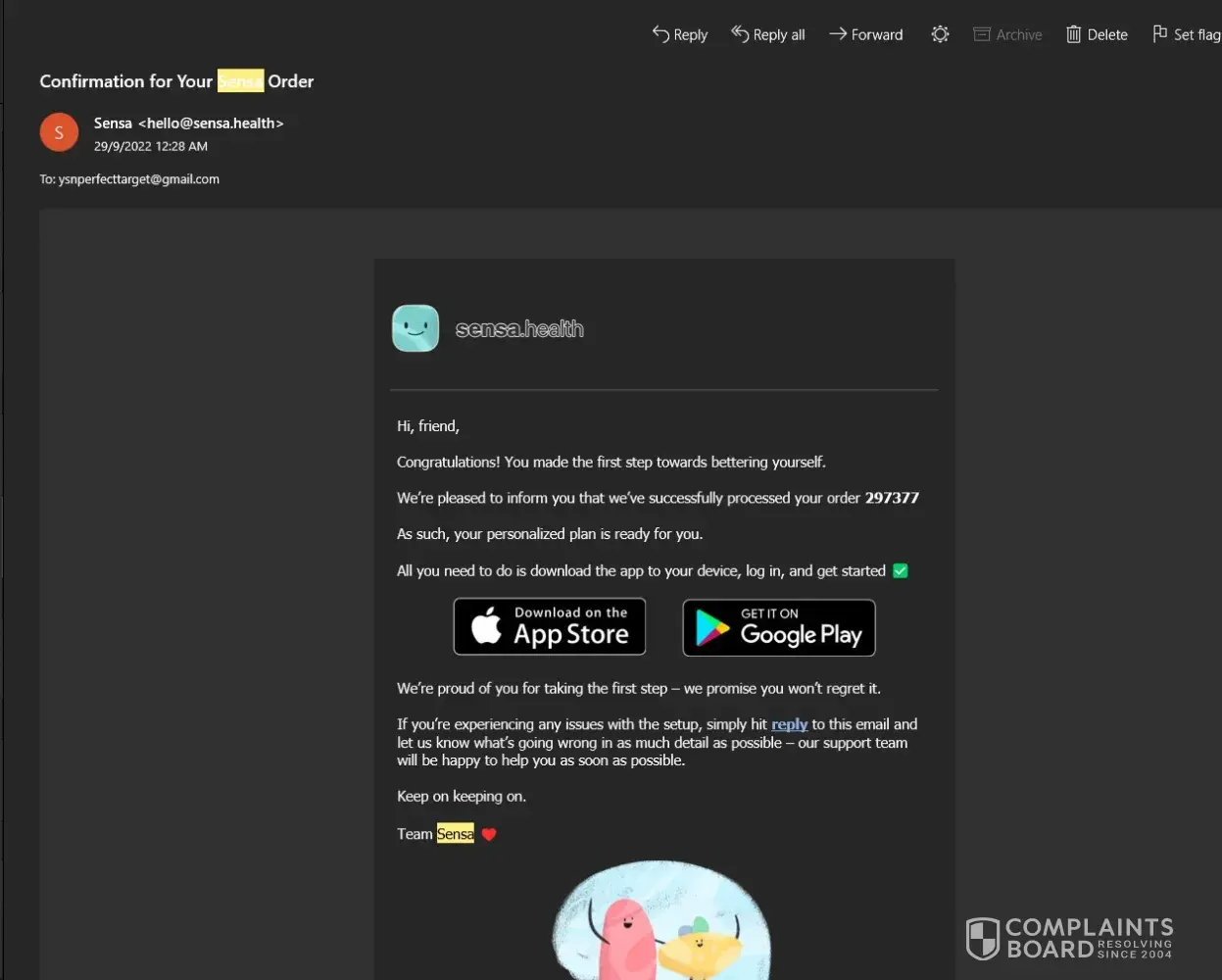 I contacted Sensa early on stating that I was unhappy as I felt it was falsely advertising what it provided (in terms of a detailed, personalised plan) and after one email that didn't say anything of use, they stopped responding. I thought I had cancelled the account and thought nothing of it. Next thing I know, without warning I am charged for another 6 months of the app and I hadn't opened it since. I am outraged that firstly there was no notification, and secondly, once again, no one responded after my reply email. I want a full and immediate refund and to have nothing more to do with Sensa.