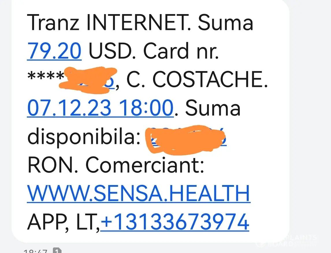 Upon checking on your profile, it seems that you purchased a recurring 3-month subscription on 2023-08-29 for 79.2 USD for the Sensa product, and the subscription was automatically renewed as indicated in your purchase confirmation. So that is why you are seeing this charge on your account.