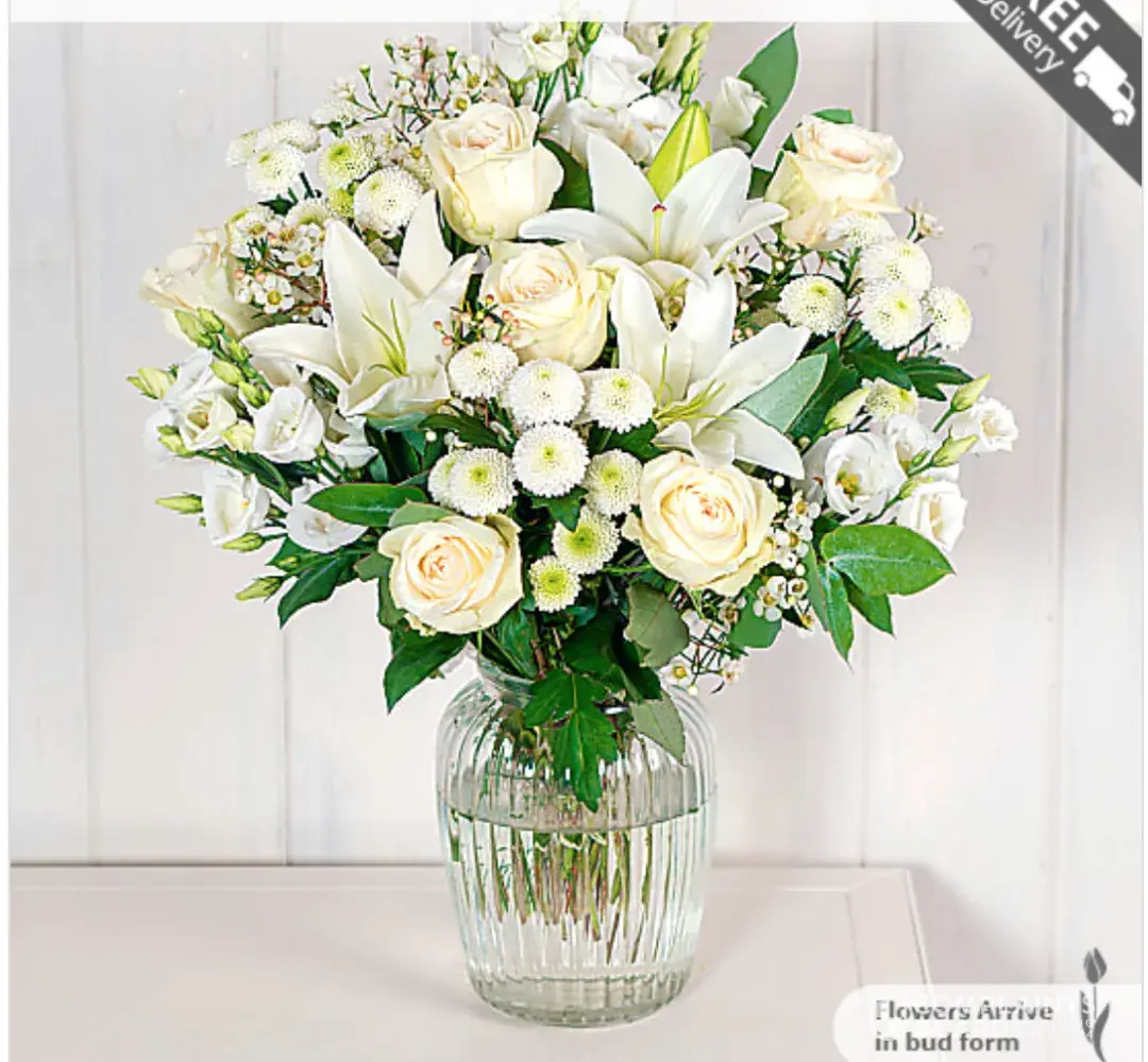 In October our son passed away, the whole family were devastated, he lived in the USA with his wife Kirstin who was equally devastated, but still had time to think about his family here in GB. She chose Serenata flowers and the flowers-White roses and other beautiful white flowers, I don't know the date they arrived but it seems to be over a month ago and I have just thrown them away. I did exactly what I was told to keep them looking fresh, and admittedly kept them in the hall which is the coolest place. Each week they got shorter but still beautiful. Thankyou