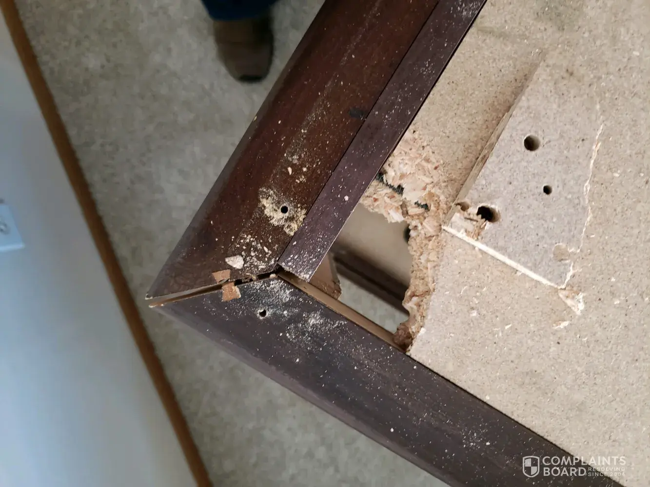 That's happening when they brought it back into my room. I had to instruct them to reverse: they had the setup wrong and had to turn it around. That is when the damage occurred.