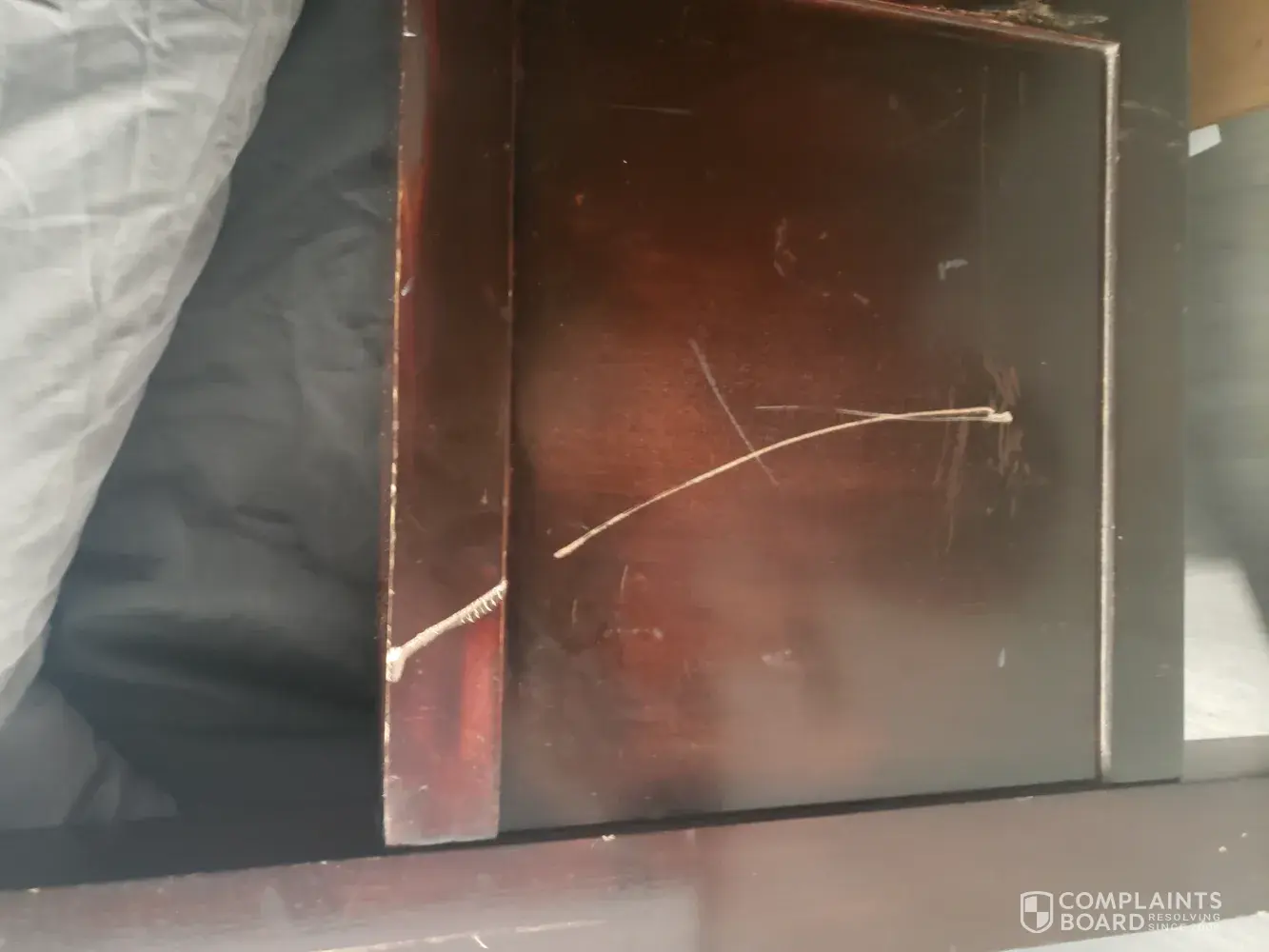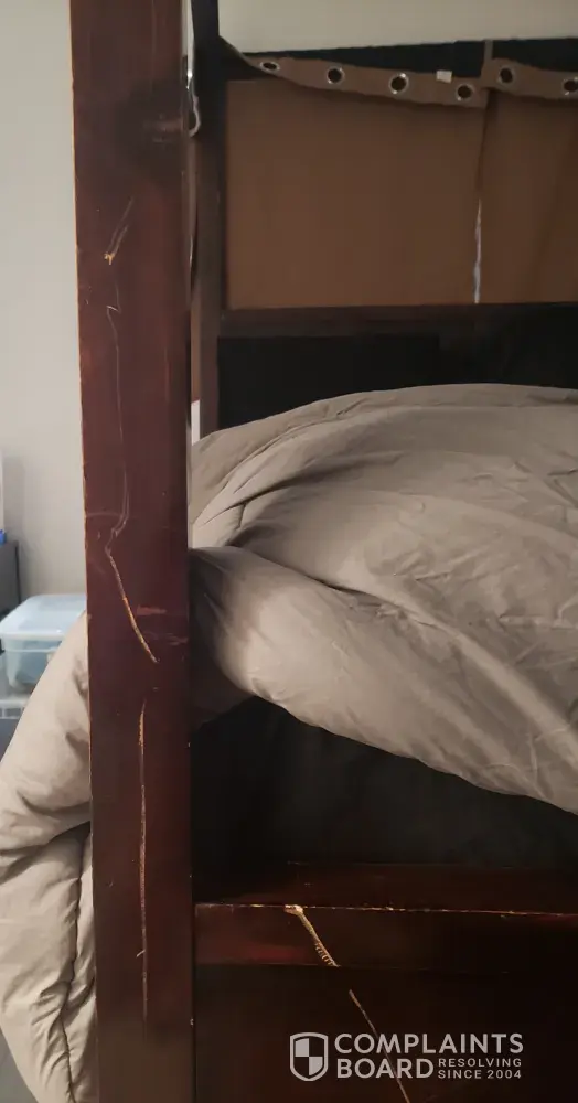 I have researched all over and my staff insist its impossible. It was all wrapped in blankets. Original pics we have prior to packing showed scratches on posts already but I don't have pics of lower but I have to assume they too were scratched.