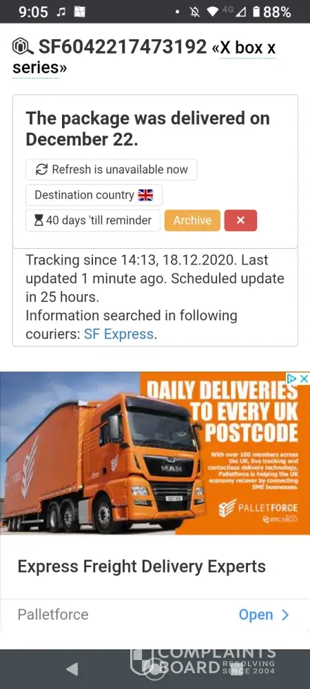 No news about the parcel I sent via SF! Very BAD service ever