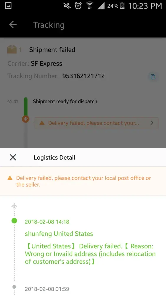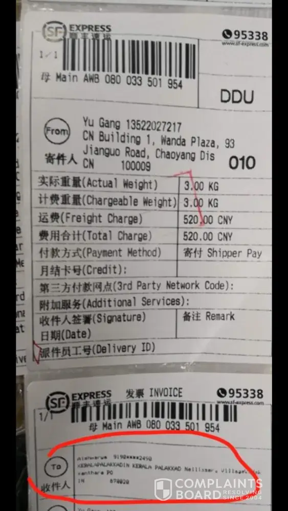I'm writing for explain my user experience with sf express.