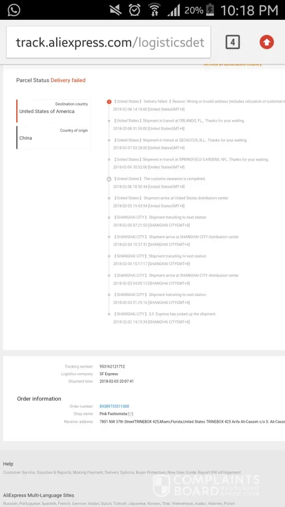 complaint _ tracking no.: [protected]