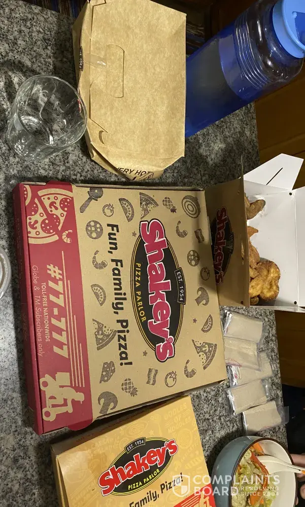 My name is Jennifer Farrell. I ordered from Shakeys in Oroville, CA on 04/06/2021. I ordered a large PCM and the girl who answered made it seem like it only came with a few things so I ordered an extra order of chicken and mojos as well as the large PCM. When I arrived to pick it up they had mistakenly given my order to someone else by the name of...