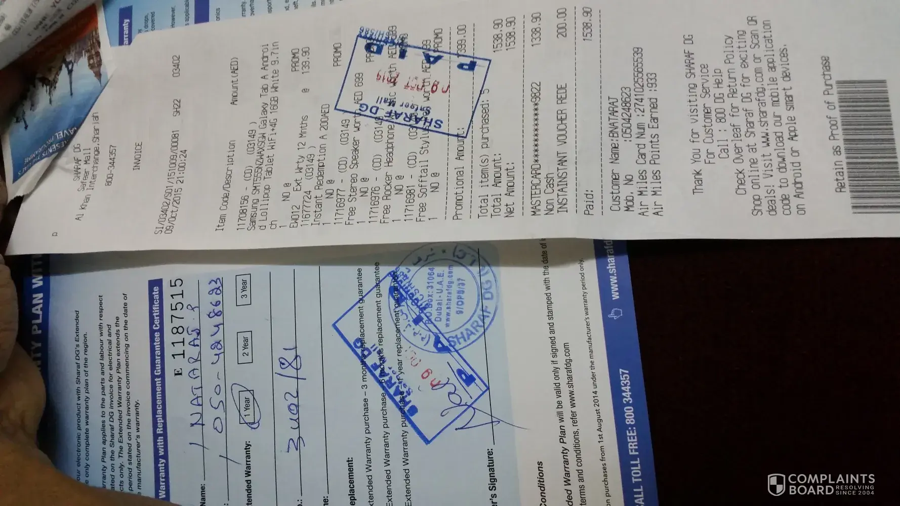 We bought Samsung tab and I asked for cashier to check the product before I collect but the cashier told me if u have issue u can bring it back. As per his advice I took the product and after reaching home in 10 minutes I reached home I opened the box to check and charge the tab but when I opened the screen of Samsung tab was cracked immediately I took that to sharaf dg in safeer mall where bought but the the manager directly told me once out from stores we r not responsible we can't give replacement if u want u can go and complaints where ever u want. Then I felt bad and I called police and I also went to bohira police station to give complaint but they told me to go department of dubai chambers of commerce. Since todsy friday (09/10/15) I have to visit sunday. I bought this one for my special occasions to celebrate but Unfortunately I lost that happy now I'm very disappointed. My wife told me in future not to buy anything from sharaf dg not only me I will make sure I will tell all my friends to not to buy anything from sharaf dg.