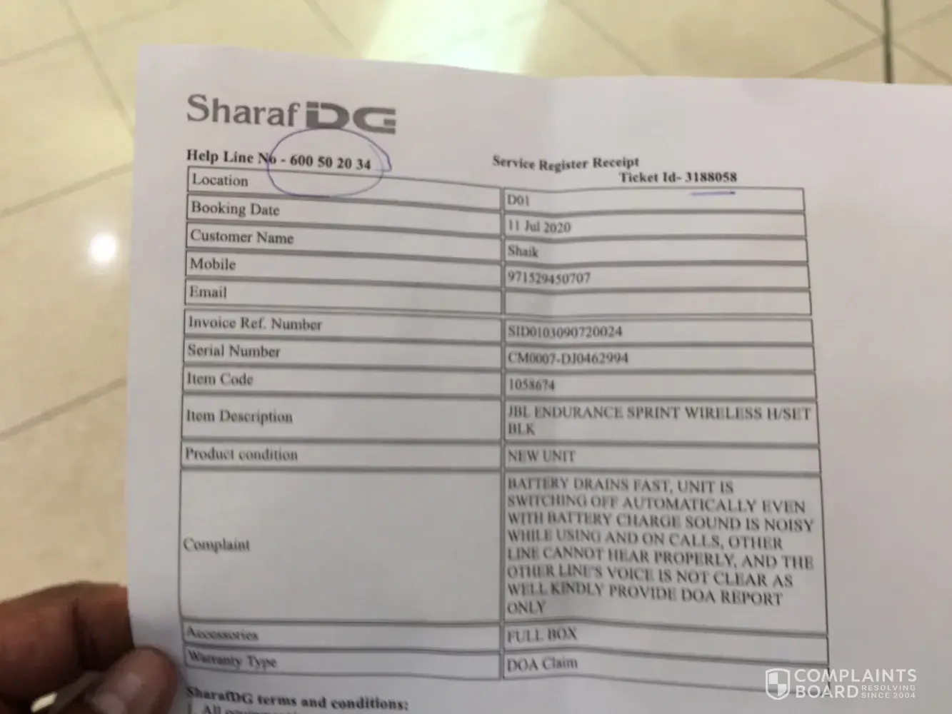 Recently my friend in Dubai had ordered a mobile phone online as a gift for my mother in law in Bahrain. Since I reside in Canada, my credit card was not accepted and I had to ask my friend to purchase the gift for my mother in law. The order number was BH46712. My wife had contacted sharaf dg through whatsapp (+[protected]) & had inquired what documents were needed for picking up the phone. The reply was id card & photo of credit card. Later on we also received the message that the phone was ready for pick up.