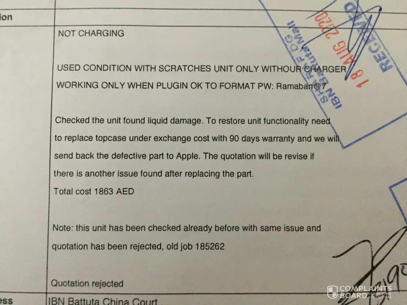 Laptop - faulty camera, sent for repair and they damage more with scratches and ink spells.