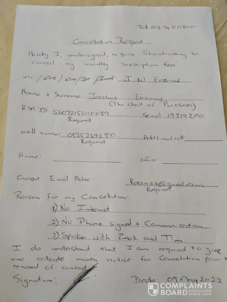 My contract was cancelled at the end of that month due to transport problems, on the last day. I still tried to see how this is going to work, and paid for a few months with my savings. When I contact them to cancel the sharetrakin, due to that I was jobless. They refuse. I even sent them proof that I even did not yet get paid by the UIF claims department , till now on 9/3/2023 .