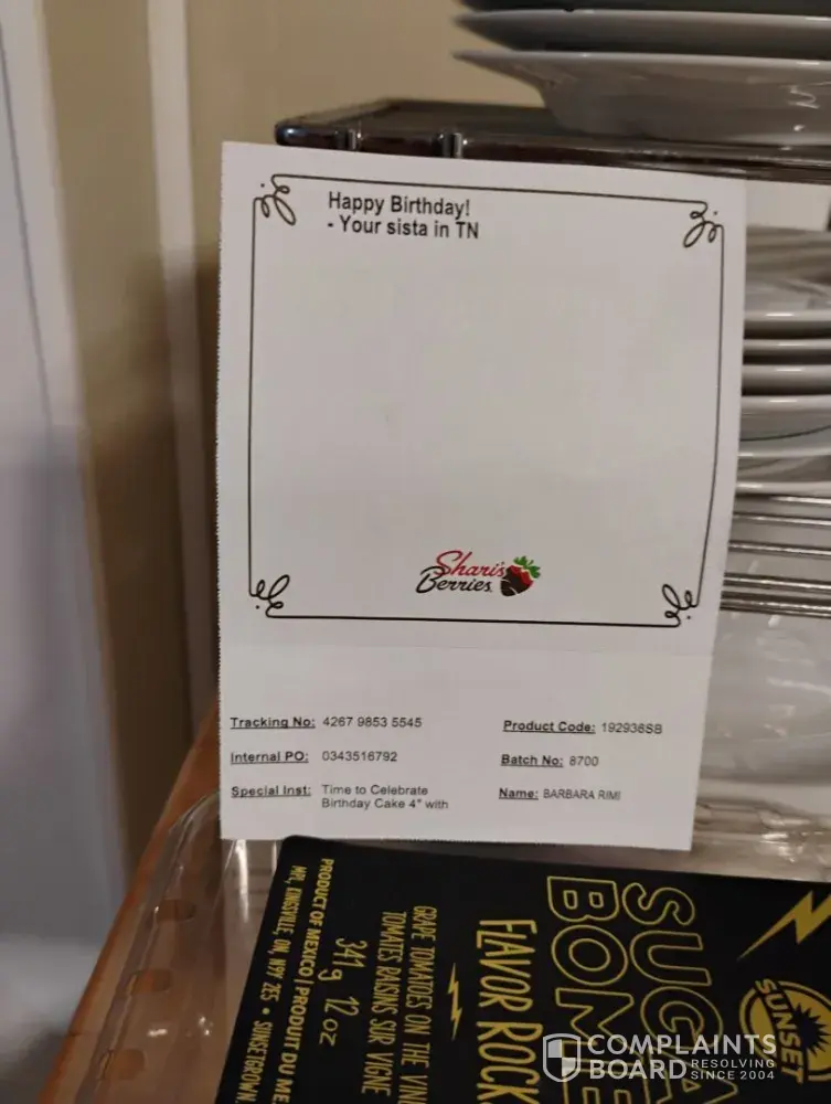 Read full complaint5 Shari's Berries / Berries.com Reviews