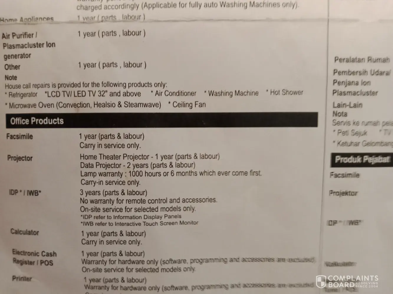 This makes us to avoid purchasing any sharp product if they cannot handle the after sales services