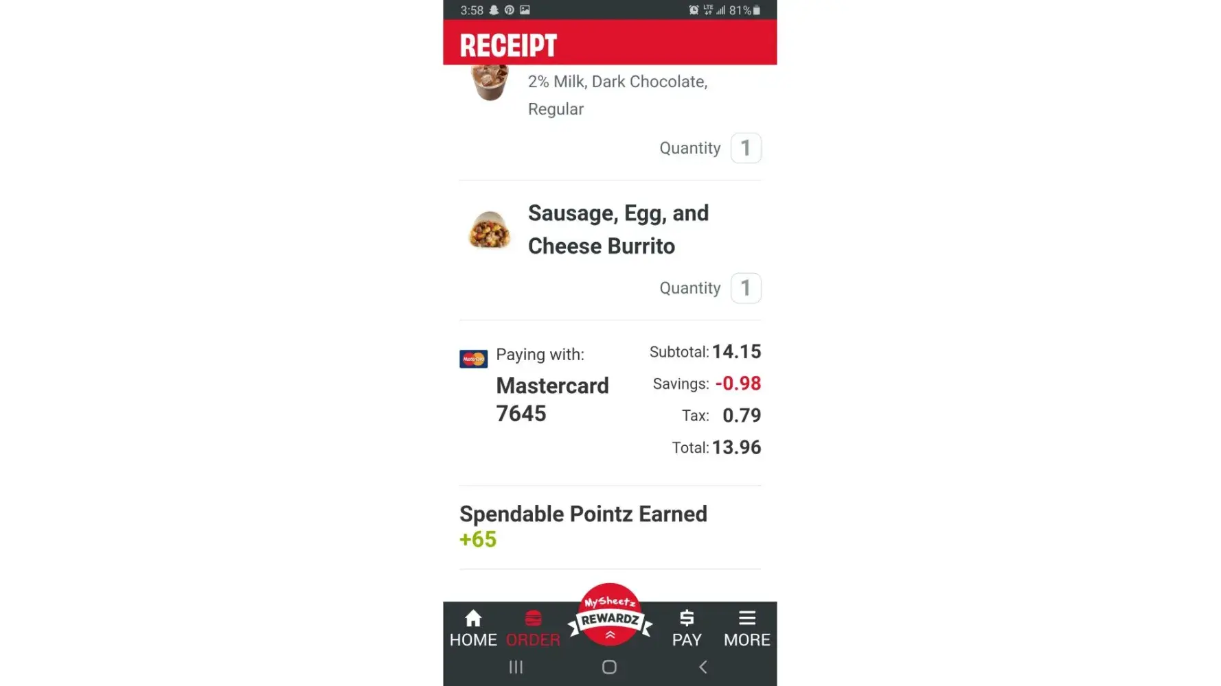I ordered my sub toasted but didn’t want it toasted so much that I couldn’t bite it. It was put together very sloppy and I asked for mayonnaise on it but it wasn’t there. I rarely order food from Sheetz and now I know why. What a waste of money!