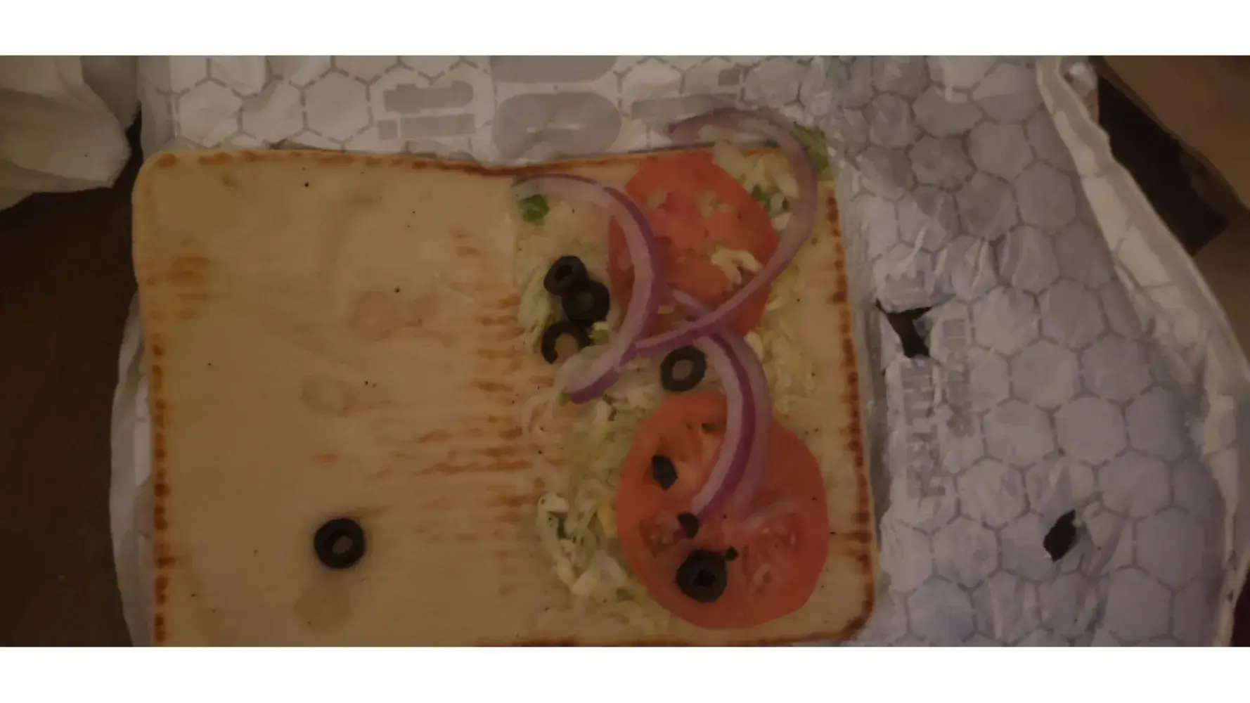 This is a "veggie sub with fries on top" I called the manager and was told this is correct. No...this is a Flatbread with toppings. It's nice to know that vegans and vegetarians are forced to eat THIS and pay regular prices. I'll definitely be filing a charge back for false advertising. This company hires whatever breathes anymore and the employees are rude...the management is usually worse and hangs up on you.