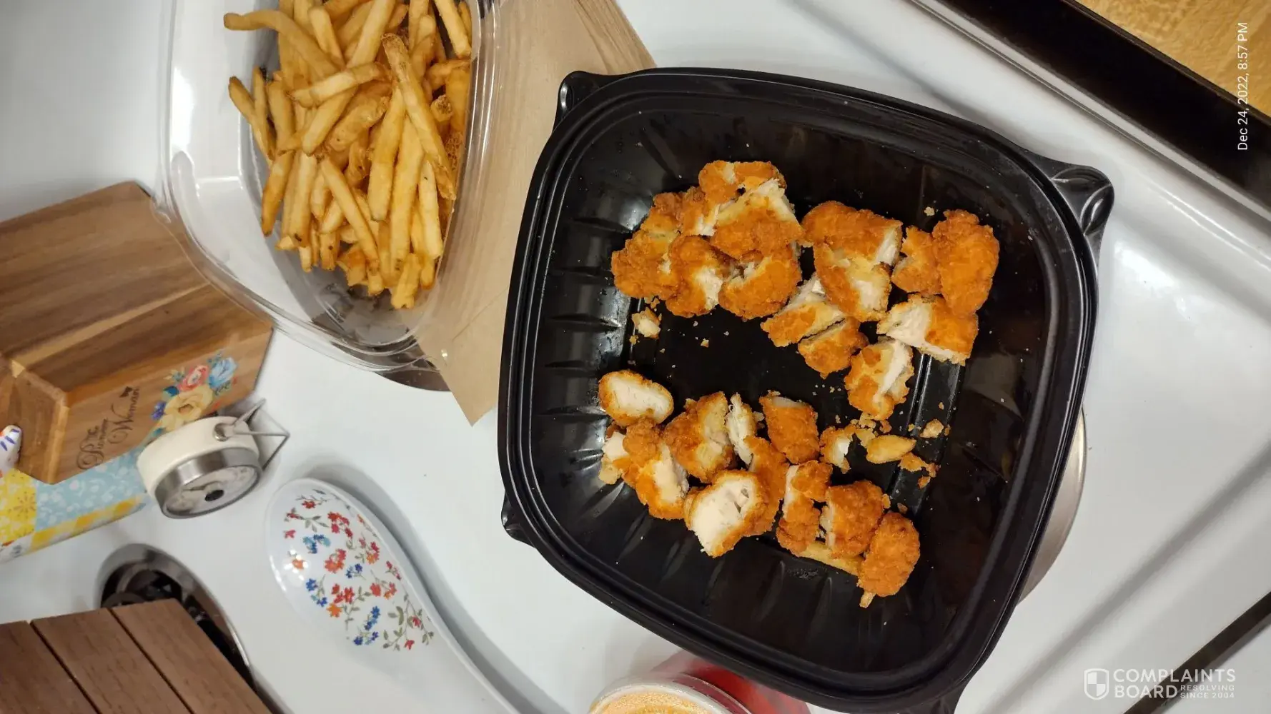 it’s 12/27/22 and i went and ordered some food , moterella sticks , 2 boom boom mac , chicken tossed with garlic , and once again the person making the food at this time , threw whole entire patty’s of chicken in the mac , and it’s disappointing, my order number is 853 , i’ve took pictures of everything i’m gonna say something next time i go there , becuz it’s kinda ridiculous that this has happened about 3 times and it’s the same employee that does it every time , every time , i wasn’t able to catch his name i’m not even sure if he had a name tag , he doesn’t even say anything when he hands me my food witch i think is kinda rude a little bit when it comes to service .
