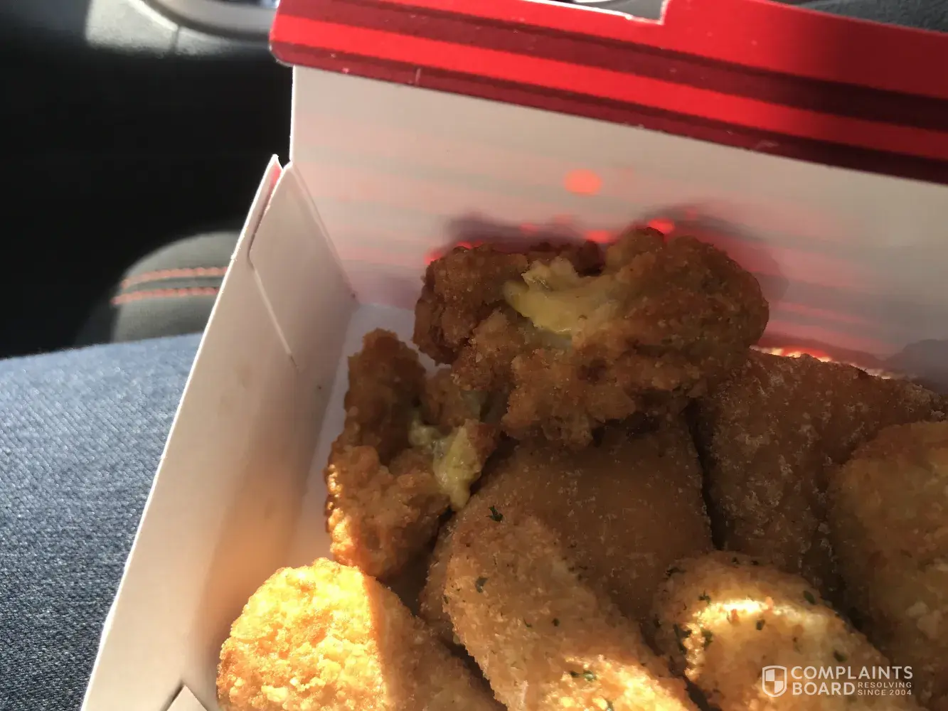 I ordered an appetizer box and all of the jalapeño poppers aren't even poppers... they are just mush. All over the rest of the box. Very disappointing and messy to say the least. I have never had this happen and they are usually great, I don't know if it was because of being busy leaving them in too long or what, but it was 10:45 in the morning not a busy hour to make lunch.