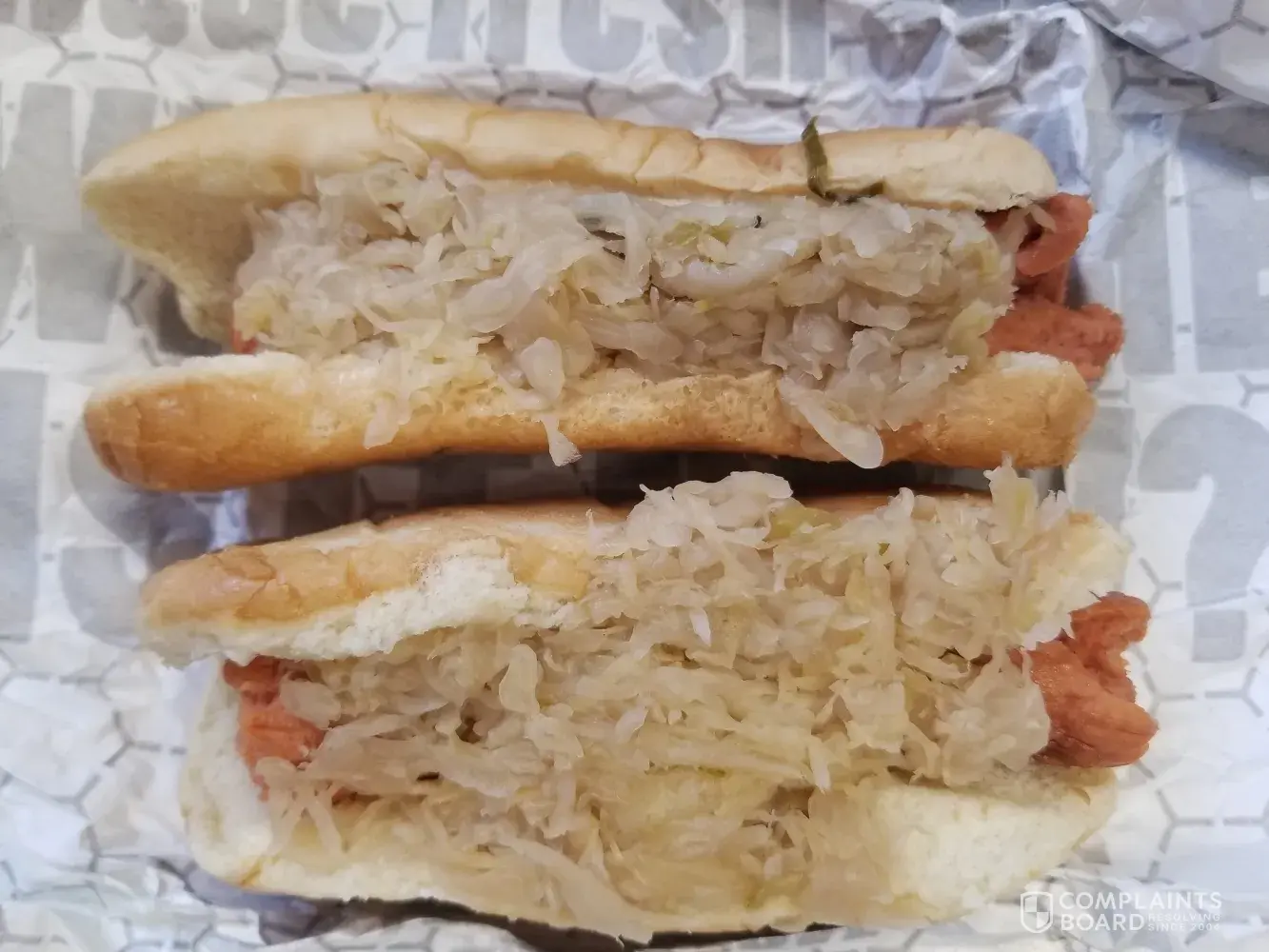 I order from Sheetz many times, but today these were my hot dogs. I threw them away. Disgusting! I have attached pictures of the hot dogs. The sauerkraut was inedible and the hot dogs were hard and rubbery and split on the ends. There was green stuff in the sauerkrauk that I hope was lettuce. I have not been back to this store to eat and I used to on a regular basis. The store is located at 4430 Winchester Ave. Martinsburg, WV 25405. The sore is #546.