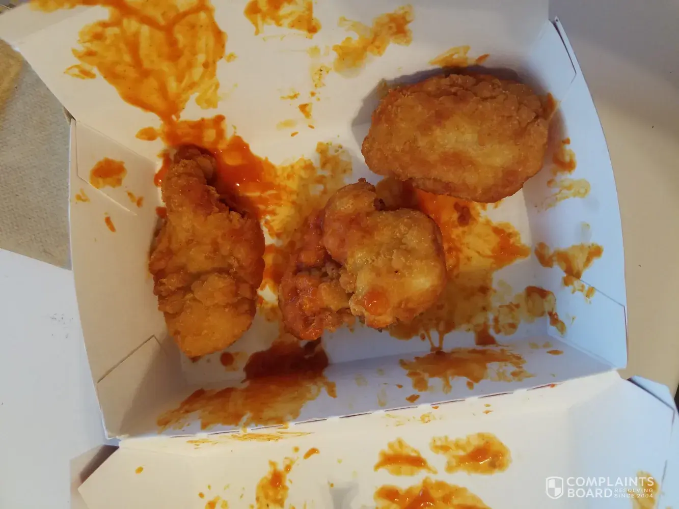 I ordered the boneless bites with buffalo sauce to be tossed with the bites. When I got home and opened the container there was the smallest amount of sauce on the bites. The sauce covered a small portion of some while most really didn't have any sauce at all. When I have ordered this before all bites were coated in buffalo sauce. I am very dissatisfied with the food I received.