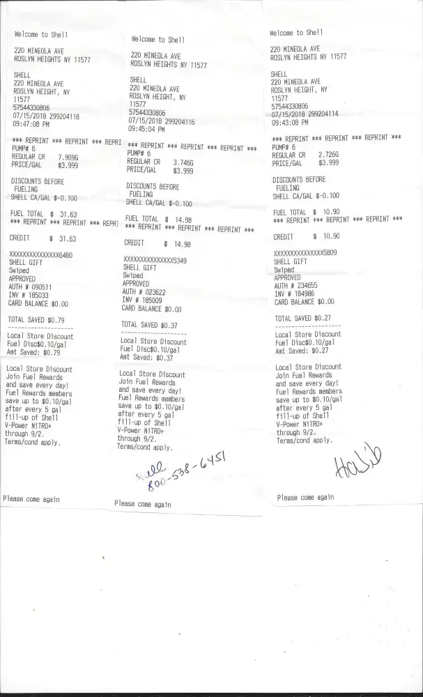 On 7/15/18, we stopped at the Shell station located at 220 Mineola Ave Roslyn Heights, NY 11577