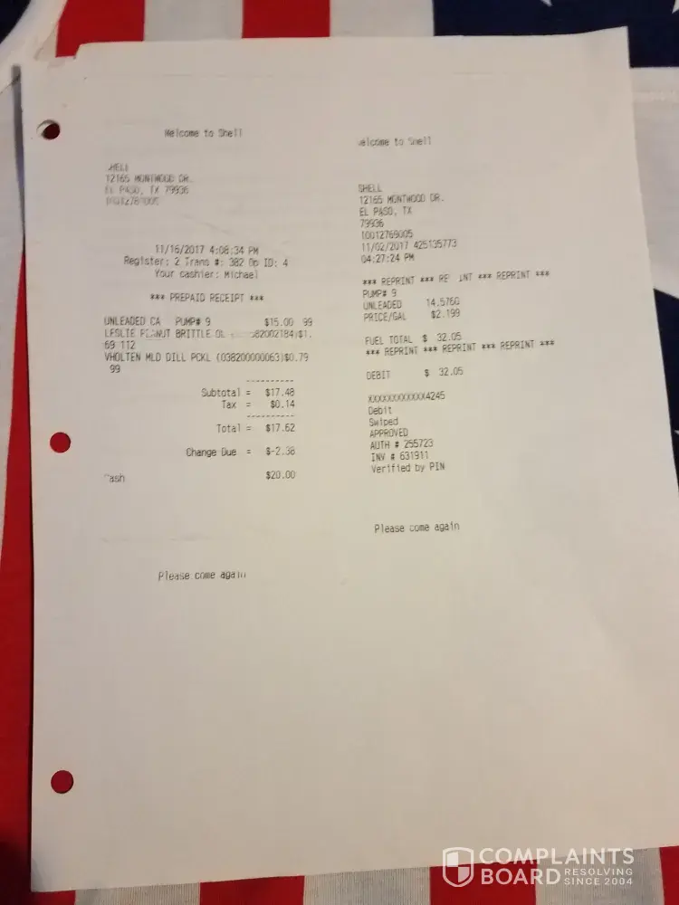 Shell unauthorized debit card charges