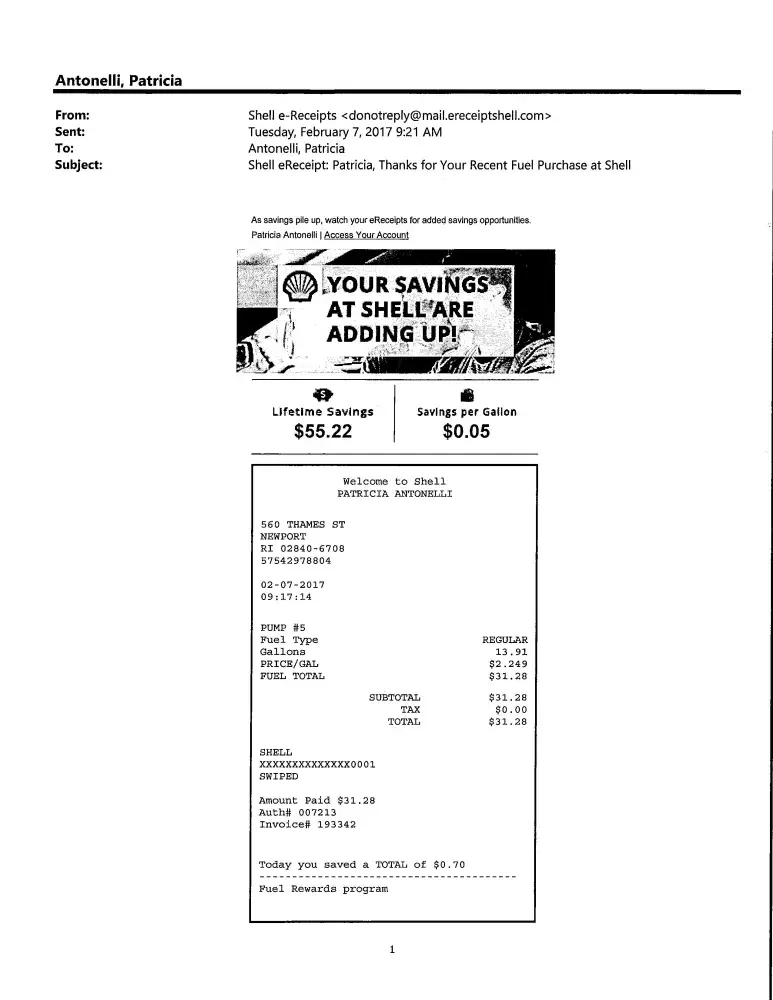 Shell receipts for gas constantly sent to the wrong email address