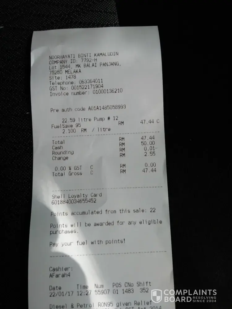 I make a complaint to the station workers and they will make the complaint, I did receive any reply from Shell until today .