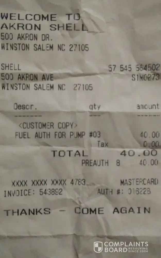Went to Shell [protected] 3480 Canal Winchester, Ohio 43110 @ 11: 40 p.m. Tran # 1023687.