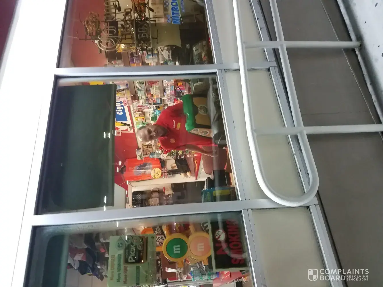 I tried to get a picture of the man but couldn't. But he was not born here in the US, bold, at least 6' tall and I think he works as the cook as well as cashiering.