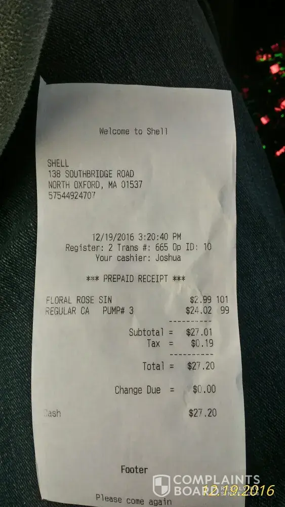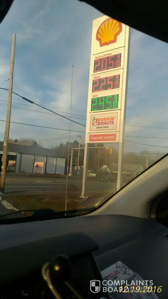 I used the GPS navigating application Waze to find the lowest price for gas located near my general area. The app's top choice was the Shell Gas station located at 138 Southbridge Rd, North Oxford MA 01537. The price per gallon was advertised as $2.05, (On Waze as well as signage on street)so I decided to spend my last $25 dollars thinking I'm going to fill my gas tank, at no time did any employee nor any signage state that the actual price per gallon was $2.25. I didn't even notice till after I started pumping the prepaid gas into my car. To my surprise apparently the $2.05 per gallon was only possible if you also purchased a car wash which at no time did I see any advertising to that affect and in my opinion this is a way to trick their customers into thinking their getting gas at $2.05 when their really paying $2.25. I will never go to a shell gas station again and I will tell everyone I know that shell condones deceptive practices to get customers to buy their gas. Your should be ashamed and I should be compensated for being tricked by a partner under your brand. Have a Merry Christmas.