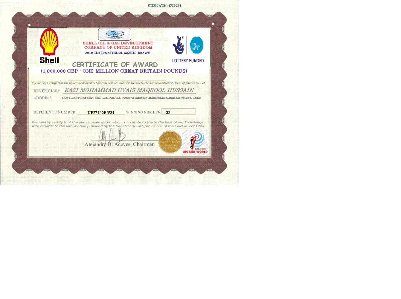 my name is varun venugopal, i got an e-mail from shell petroleum devolopment of england thhat i have won a 500, 000 great britain pounnd in a draw hheld on 12/08/2010.i just wanna know that if it is fake or not.im eagerly waiting for your response .my e-mail id is vanffic@yahoo.co.in