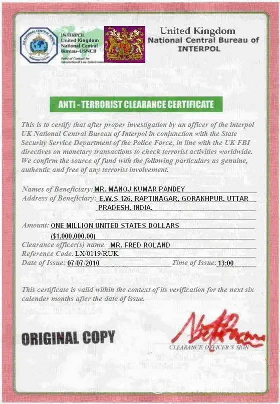 These information will be needed in preparing all the vital documents that will cover the processing and final release of your price money to you.