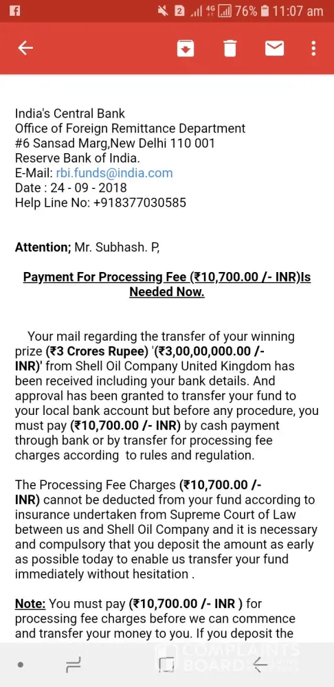 I'm Subhash P From India Karnataka Bangalore I'm winning Prize 3 Crore it's Really R Fack Tel Me Please it's asking 10, 700 yo pay first but it's true r fack tel me plssssssssssss I'm waiting for ur msg I'm regular costmar to Shell oil