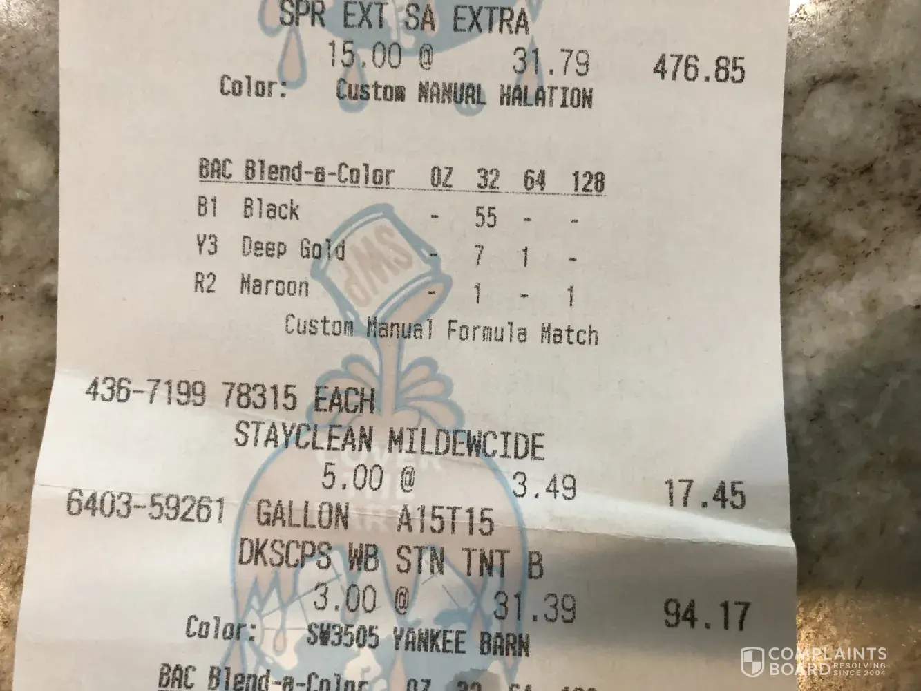 Read full complaintconcrete stain purchase/return attempt