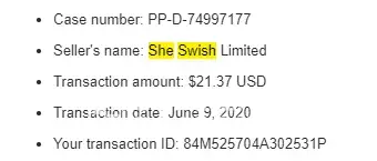 payment of $27.63, Jun. 20, 2020 to She Swish Limited through PayPal