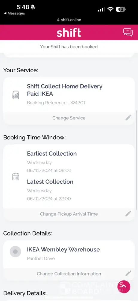 I am writing to formally complain about the unacceptable service I received in relation to my recent order with your company. I placed an order with IKEA for a sofa, which was originally scheduled to be delivered to a pickup point. On the same day, I received a message from Shift offering me an upgrade for £19 to have the sofa delivered to my home, which I accepted.