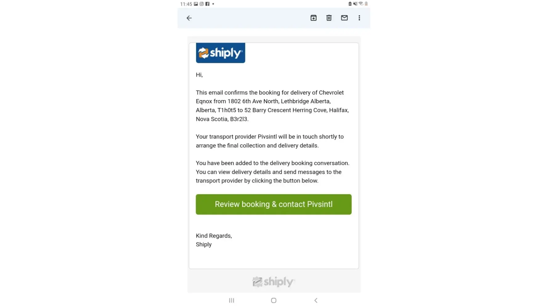 This was the first message I sent to Shiply about my issue. The end result is that I was forced to file felony charges against the driver and Shiply in 2 separate countries. I have filed these charges as internet crimes because Shiply is an internet-based company. I am continuing to press charges as we speak against Shiply since they have not refunded me, and they have knowingly broken the law up to this point. I have filed charges against Shiply and the driver with 3 separate police departments, the FBI, DOT, FMSA, the National Cyber Security Center, and the National Crime Agency (the UK's version of the FBI) in the UK. to call Shiply anything more than a common criminal is naive.