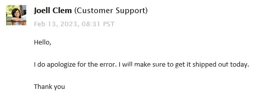 I ordered from this company and paid by check because, as it explains on their site, if you pay by check, they’ll process it ASAP. After 8 days with zero communication from them, aside from the email informing me that they received my payment, I contacted them. They told me that they had my main order but we’re still waiting on two other products I ordered so they would hopefully get them, and then be able to ship them, within a few days. I asked them if they could AT LEAST ship my main item and they said they would do it that same day. Fast forward two days and they finally shipped the item. Via USPS so I guess that it will hopefully maybe be here in a couple of days. TWELVE days to get an item from “Shipped TODAY†is BS. I will never order from this company again.