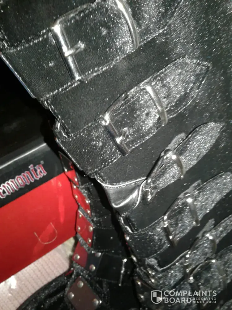 One buckle plate was missing off one boot. The tongue was off blk on the boot too.