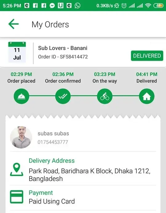 I ordered a food from a nearest restaurant in Banani on Shohoz Food application. Order ID of that food is (SF584144720). The order was placed at 02:29 pm and confirmed at 02:36 pm. The delivery time was 40 minutes. After 40 minutes I checked my phone an I noticed that the food was not been picked up. Then i called the delivery man & he said he is going to the restaurant now. Then i called the customer service of Shohoz & one of the executive told me that they have nothing to do with it. He also told me that I need to understand as the weather is rainy. then I waited for around 04:00 pm. after that i called that rider three times in a row but he didn't even answered it. after 04:40 he came to Baridhara from Banani. As the food got cold I refused to take and the rider went with the food and the apps showed that the food is delivered.