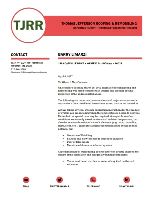 Shoopman homes began construction on this townhome in september 2016. Their roofing subcontractor installed the 3-tab shingles on this unit sometime between december 9 and december 17, 2016. During this 9 day period, temperatures in indianapolis ranged between a low of 11°f and a high of 35°f. Installing the roof in such cold temperature conditions has contributed to several incidents in which shingles or shingle tabs have either: